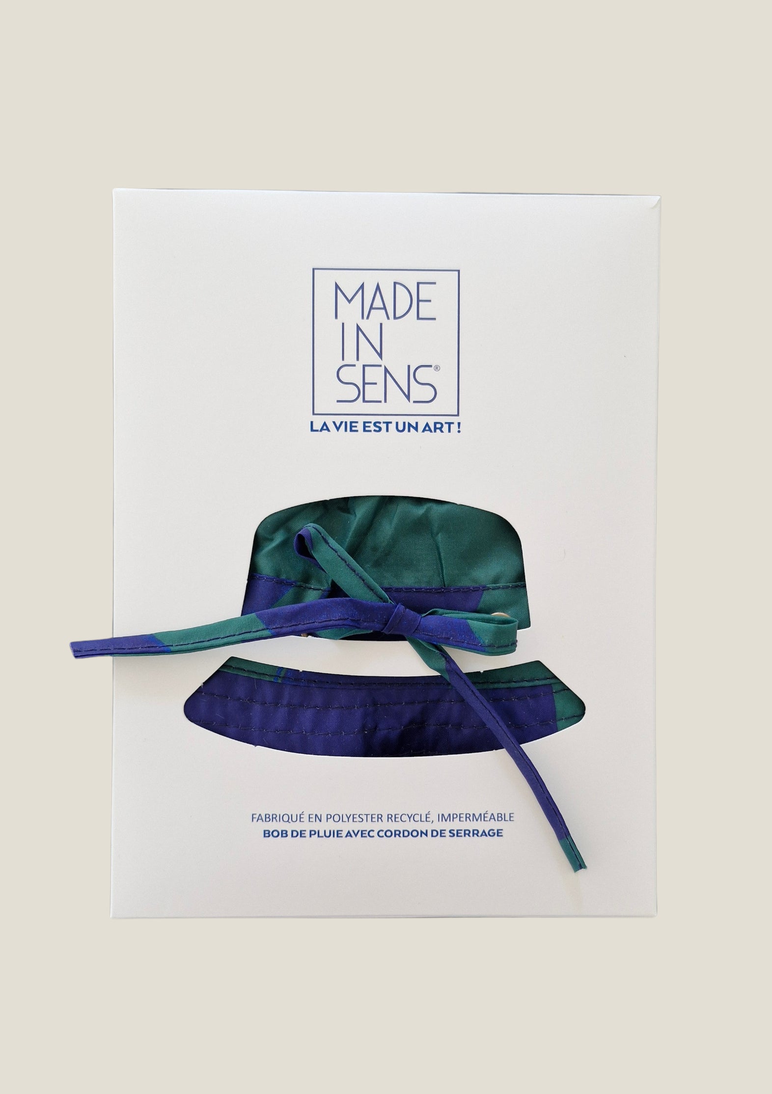 Bob imperméable, taille unique ajustable grâce au nœud à l'avant.