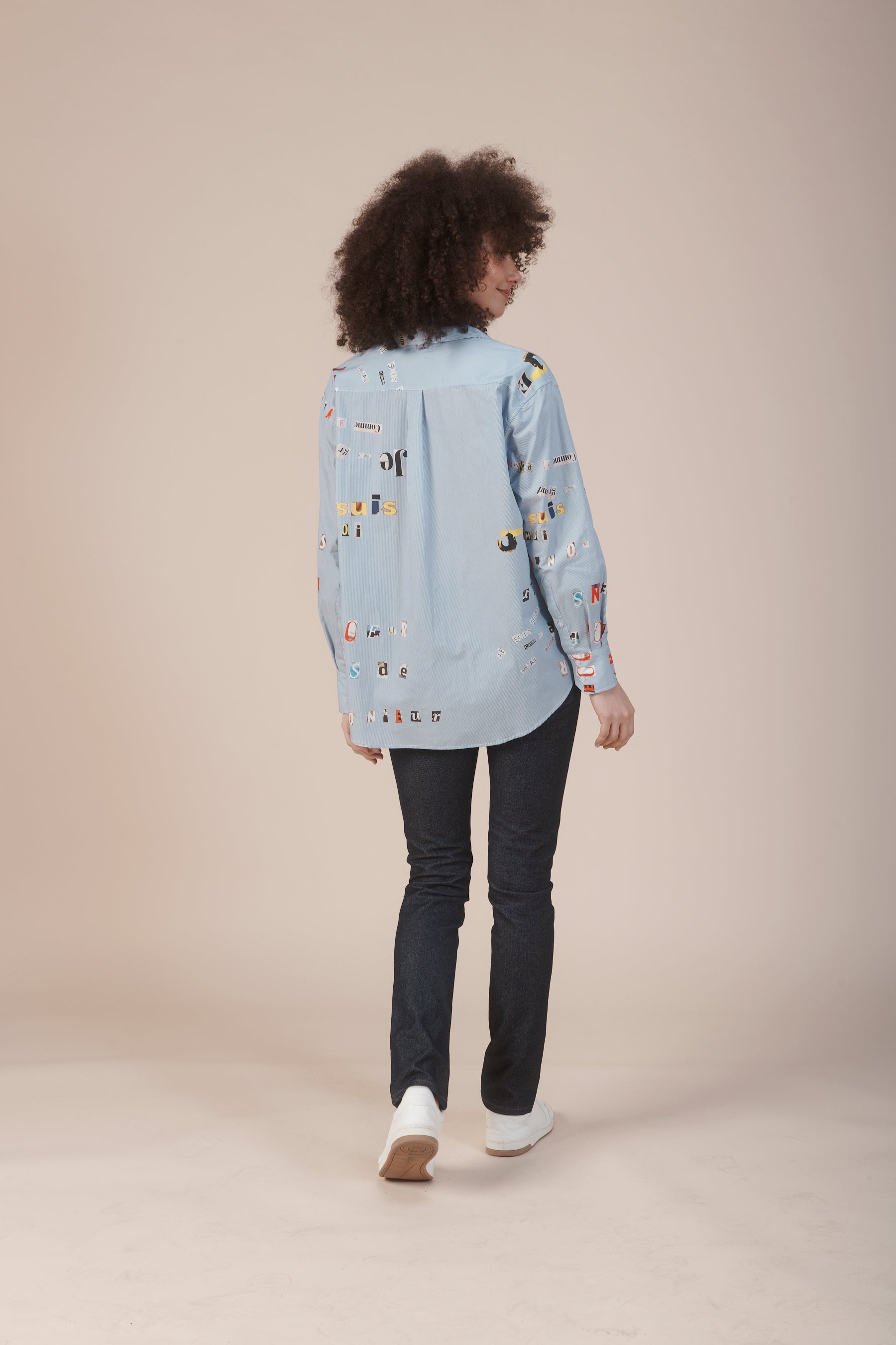 La chemise Cléo Lettres Oversized est une pièce originale et pleine de caractère, idéale pour celles qui aiment sortir des sentiers battus. Avec son imprimé multicolore inspiré des tags urbains, cette chemise joue sur l’art de la surprise et de l’interprétation.