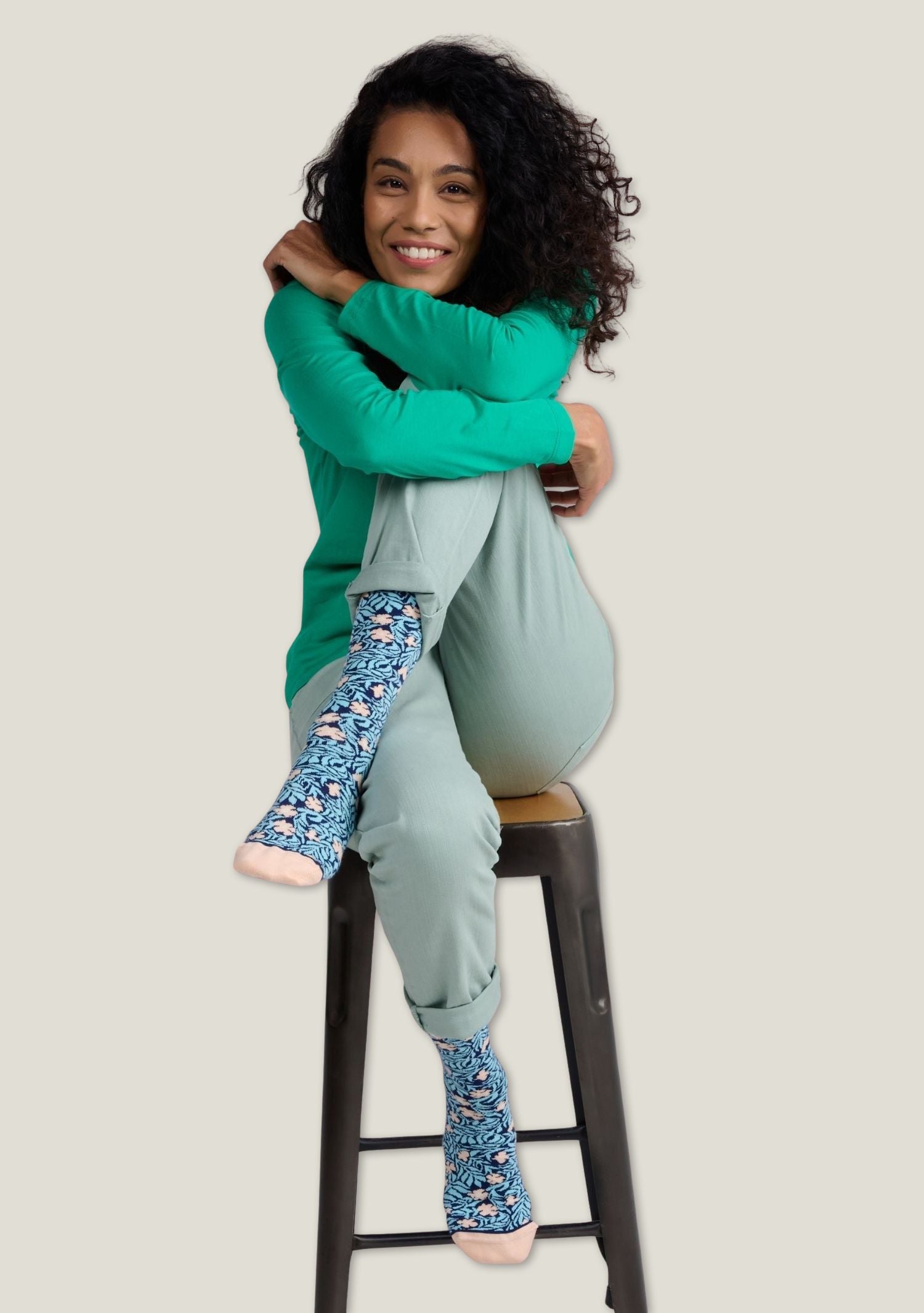 INFOS ARTISTE ET MOTIF : Apportez une touche fun et décontractée à vos tenues avec les Chaussettes Choce Jardin Vert. Inspirées par l'artiste américaine Marika Kandelaki, ces chaussettes présentent un motif de lierre fleuri, rappelant les papiers peints d’antan mais avec une touche moderne et rafraîchissante. Ce design vous transporte dans les jardins anglais, où les plantes grimpent librement sur les murs des maisons, s’exprimant à travers la nature. Un accessoire original pour ajouter du caractère à vos looks !