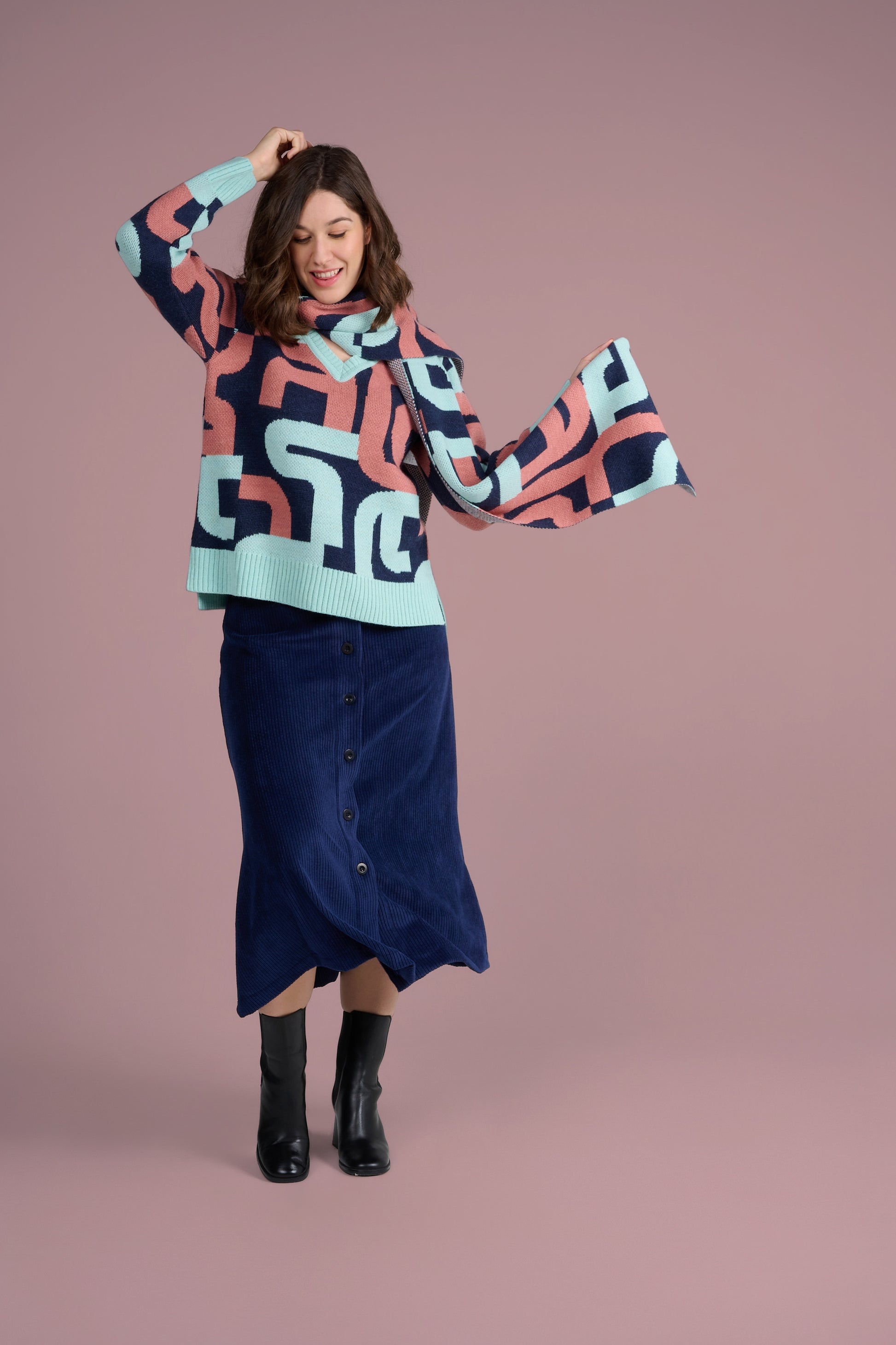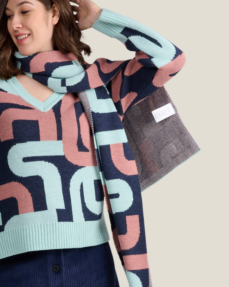 INFOS ARTISTE ET MOTIF : Avec ses dimensions de 180x28 cm, l'Écharpe Calligraphie Marine en laine vous enveloppe de douceur tout en apportant une touche de style unique. Ses couleurs vives, mêlant un vert éclatant à des touches de rose, ajoutent une note de fraîcheur à vos tenues hivernales. Parfaite pour rehausser vos looks avec élégance et dynamisme.