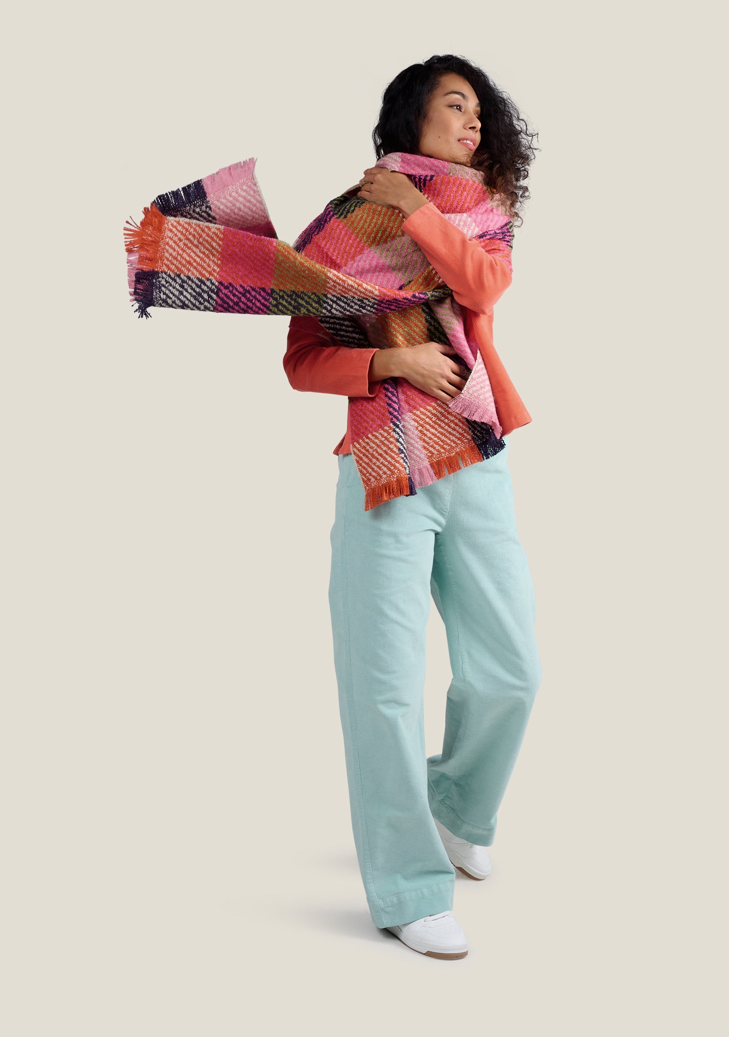 INFOS ARTISTE ET MOTIF : L'Étole Diagonales Orange vous offre l'opportunité de varier vos styles au gré de vos envies. Grâce à sa taille généreuse, elle peut être portée de multiples façons : drapée, nouée ou enroulée, pour s’adapter à chaque occasion. Ce mélange de chaleur et d’élégance apportera une touche sophistiquée à toutes vos tenues, tout en vous maintenant bien au chaud. L'accessoire idéal pour sublimer votre look cet hiver !