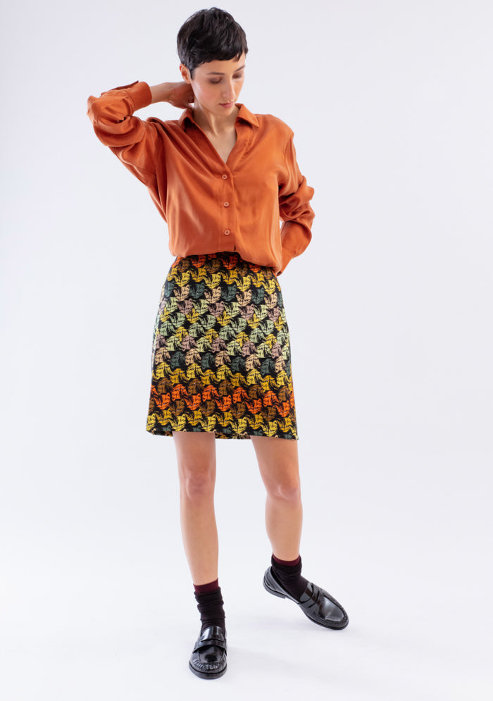 Je porte : idéal pour un look « j’ ai rendez-vous avec….. » j’ose ( 3/5) l’imprimé apporte le clin d’œil à la forme classique et pratique de la jupe.