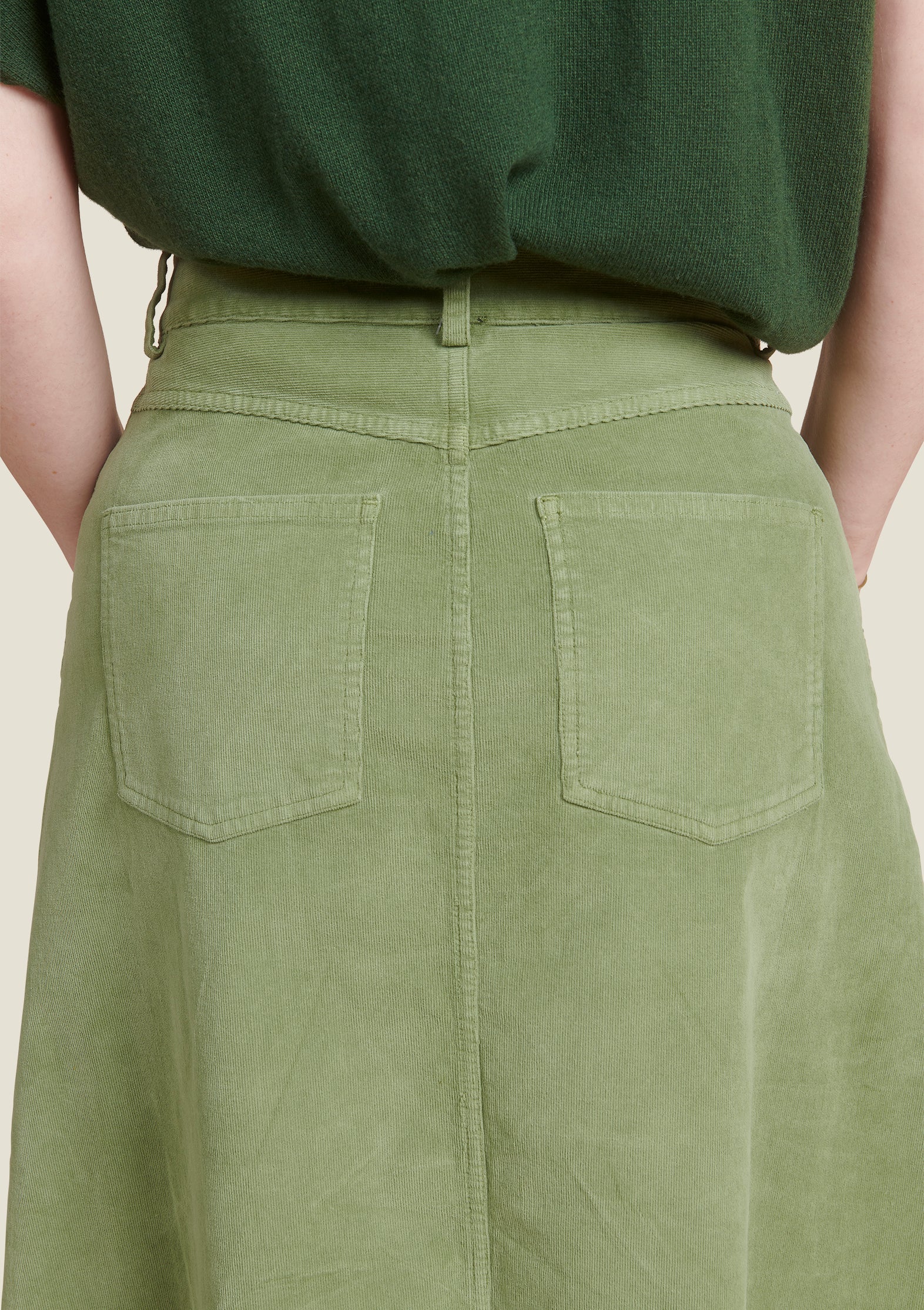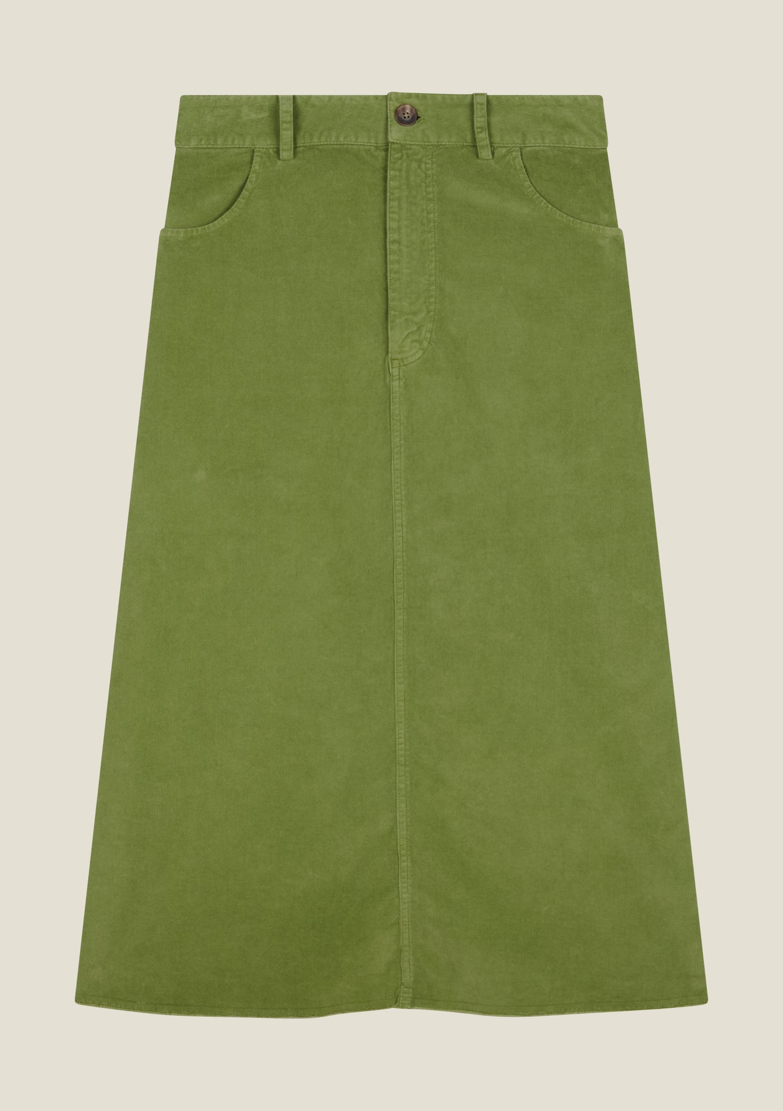 La jupe JOHANE revient dans un kaki intemporel qui se marie à merveille avec tous les imprimés de la collection. Confectionnée dans un velours mini raies à l’aspect lisse, elle offre un toucher doux et un confort absolu grâce à l'élasthanne intégré.
