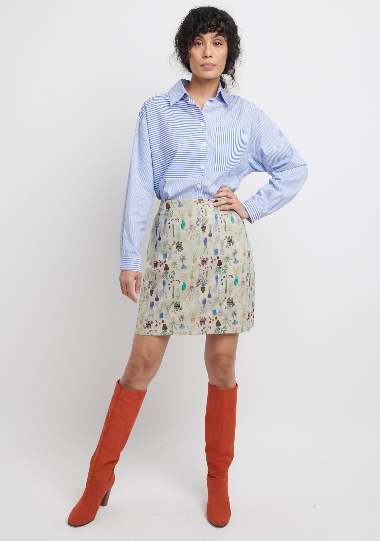 Tissu imprimé au Portugal et jupe fabriquée en France.