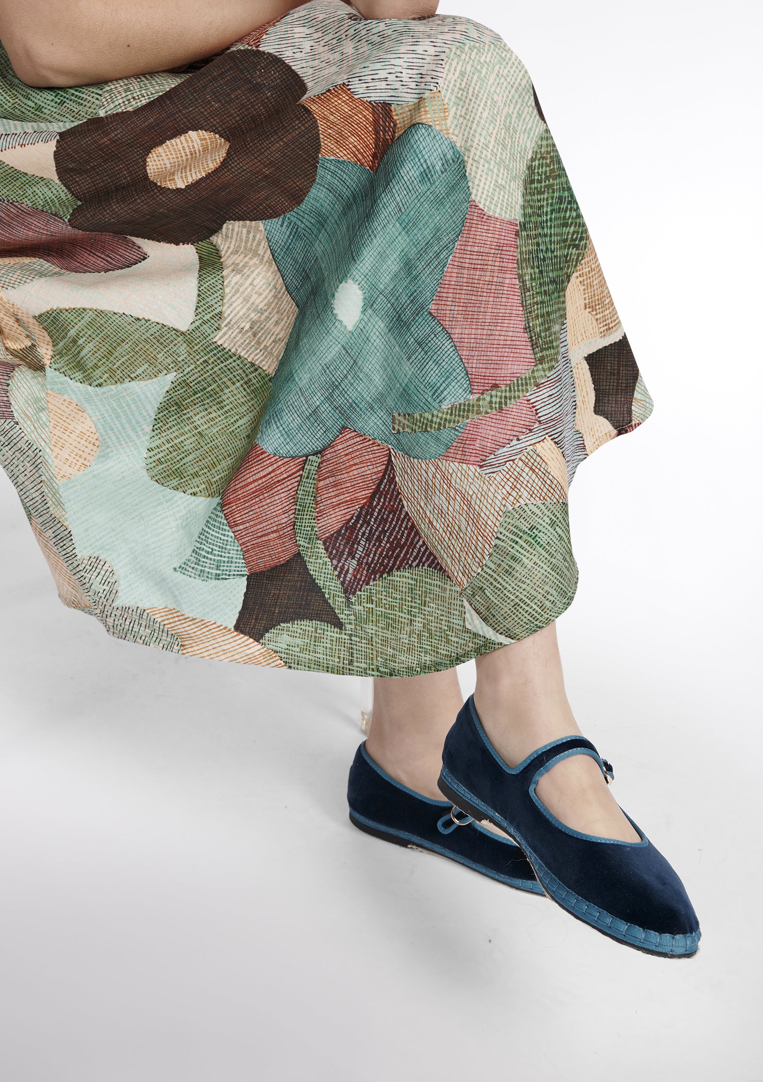 Son imprimé Amboise, inspiré du grand salon d’un château, évoque une tapisserie florale aux formes généreuses et colorées. Un motif chaleureux, imaginé par Caroline et Bettina, qui apporte caractère et élégance.