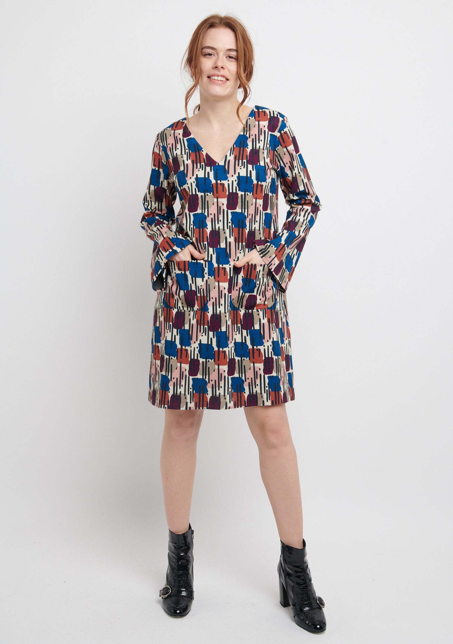 Tissu imprimé en Bulgarie, robe fabriquée en France.