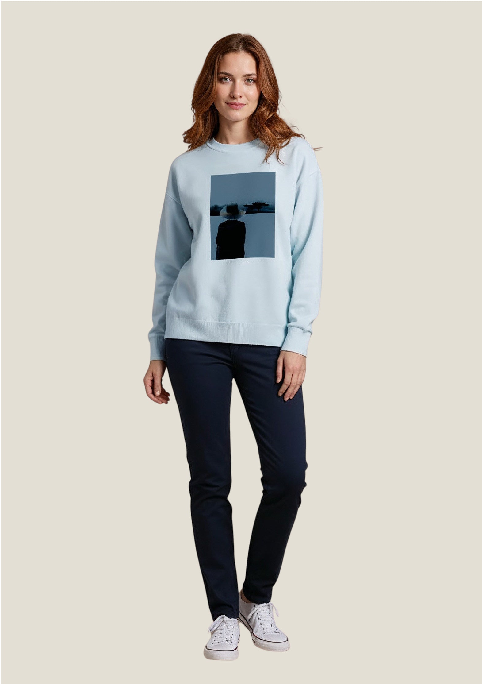 Contemplation du matin ou du soir ? Ce sweat incarne une femme prête à affronter sa journée, avec confiance et douceur. Sa coupe large et courte (au niveau de la ceinture) et ses manches tombantes en font une pièce à la fois moderne et confortable.