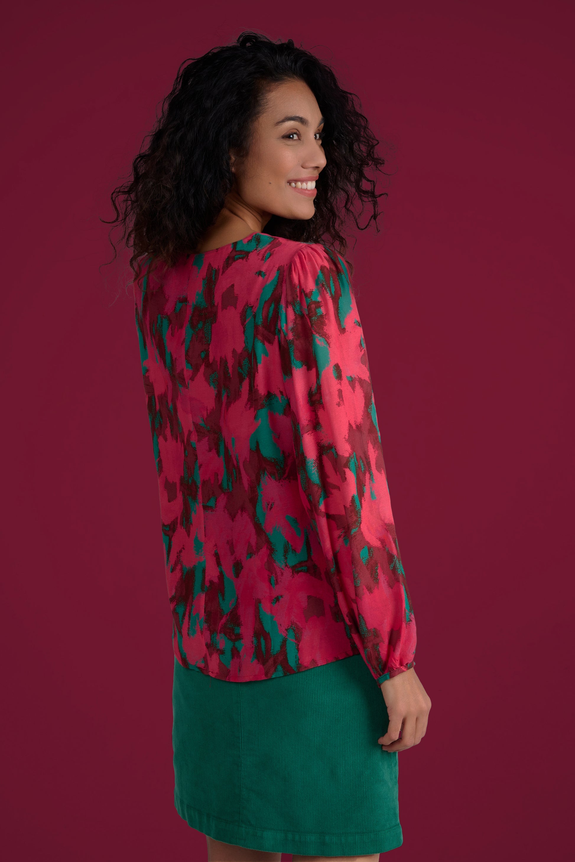 INFOS ARTISTE ET MOTIF : La Blouse Tige Érables séduit par son col V élégant et ses manches bouffantes qui ajoutent une touche féminine et moderne. Imaginée par l’artiste Mari Tsuji, elle présente un motif délicat de feuilles d’érables japonais en mouvement, superposées avec finesse. Sous le souffle léger du vent d’automne, les feuilles frémissent, mais leurs couleurs vives réchauffent vos journées.