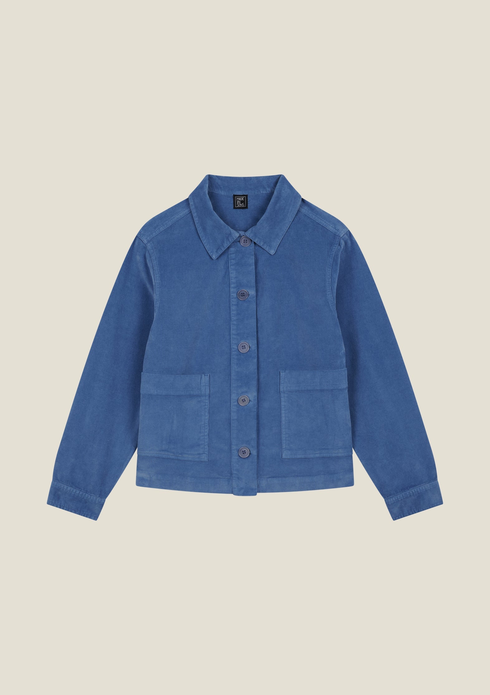 Une veste "worker" revisitée avec modernité dans un velours mini raies au toucher doux. Confortable et facile à porter grâce à une touche d’élasthanne, elle structure la silhouette tout en douceur. Sa teinte bleu gris s'accorde parfaitement avec toutes les pièces imprimées de la collection.