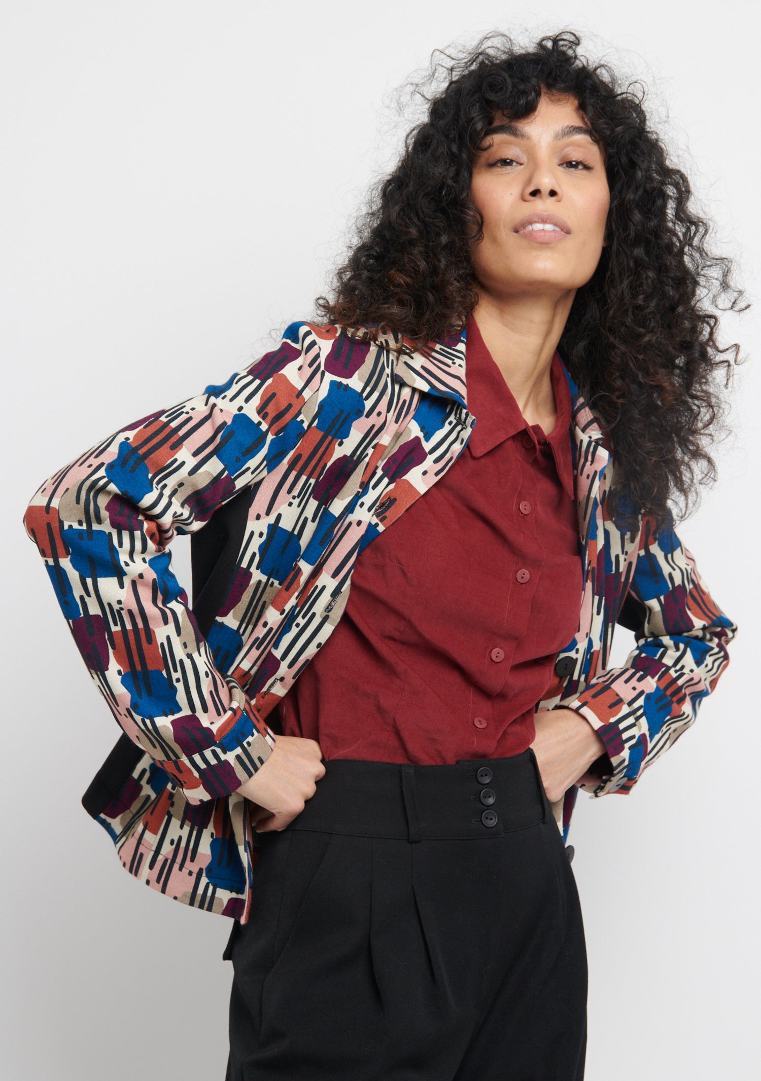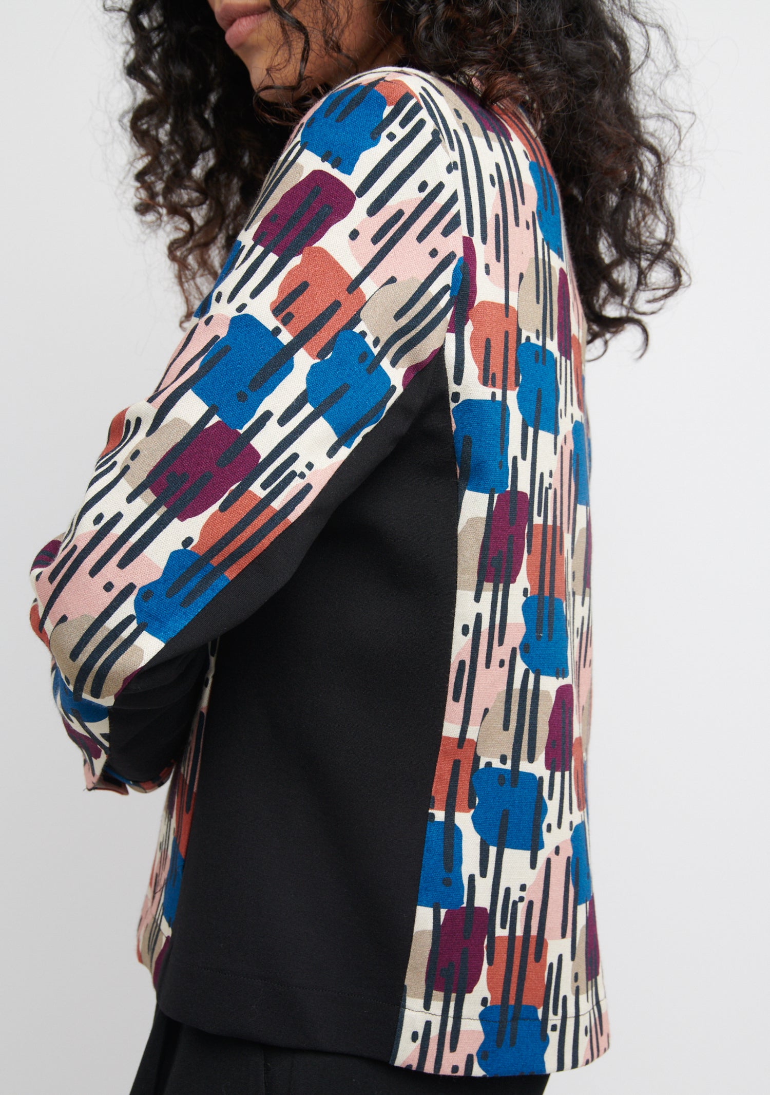 L'écru est tissé en Asie et imprimé en Bulgarie. La veste est fabriquée en France.